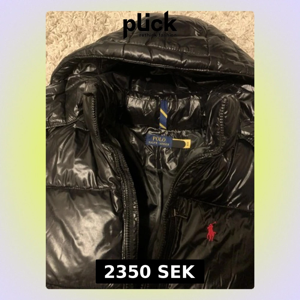 Säljer en svart pufferjacka från Polo Ralph Lauren med huva och två sidofickor med dragkedja. Jackan har en glansig finish, quiltad design och klassisk röd Polo-logga på bröstet. Perfekt för kalla dagar och har en snygg, modern look.