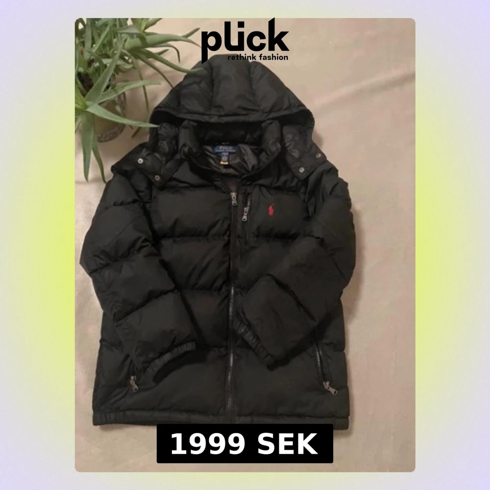 Säljer en svart pufferjacka från Polo Ralph Lauren med röd broderad logga på bröstet. Jackan har huva, dragkedja framtill och är vadderad för extra värme. Perfekt för kalla dagar och har en clean, sportig look.