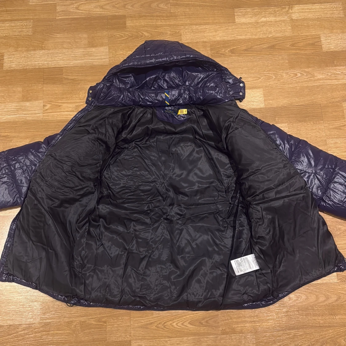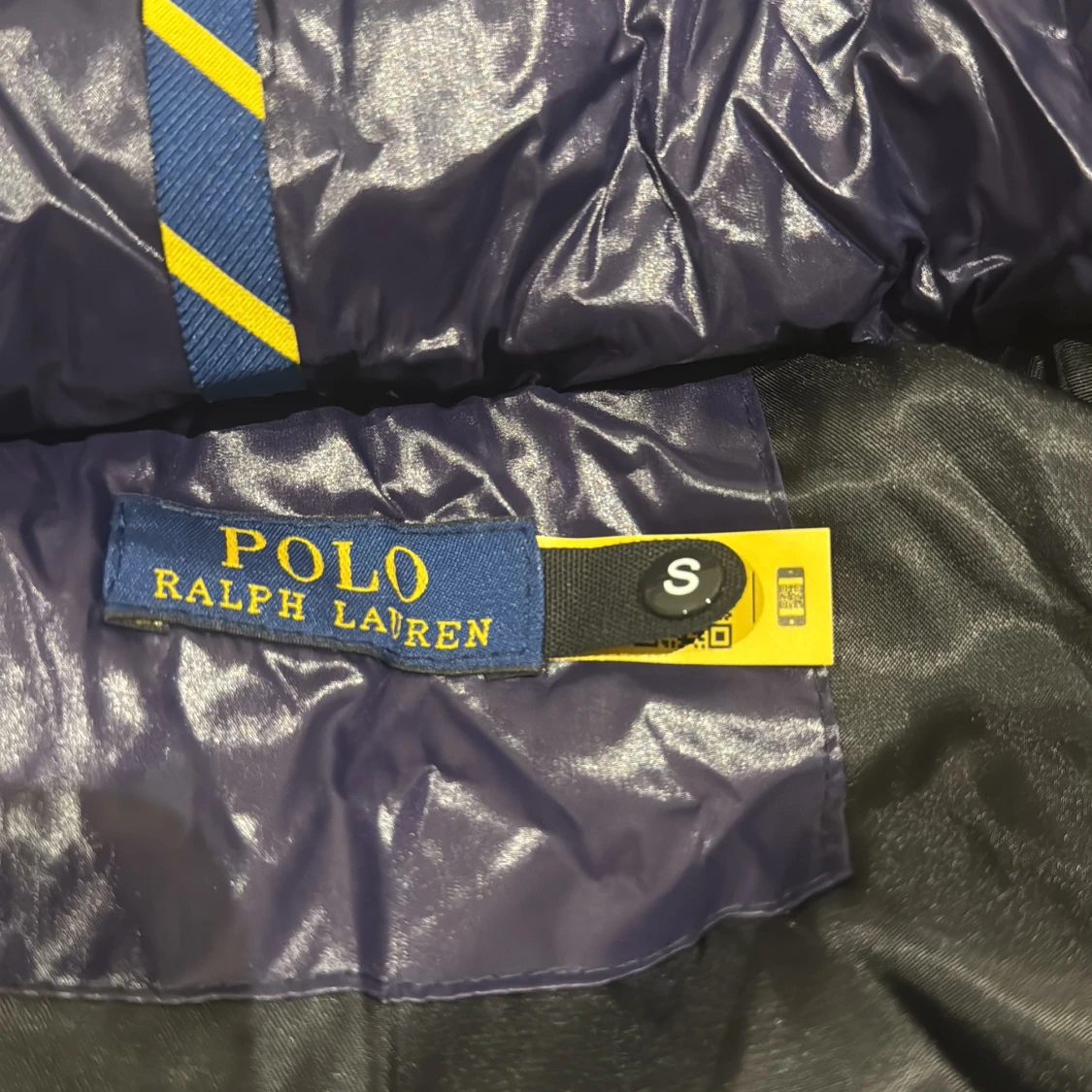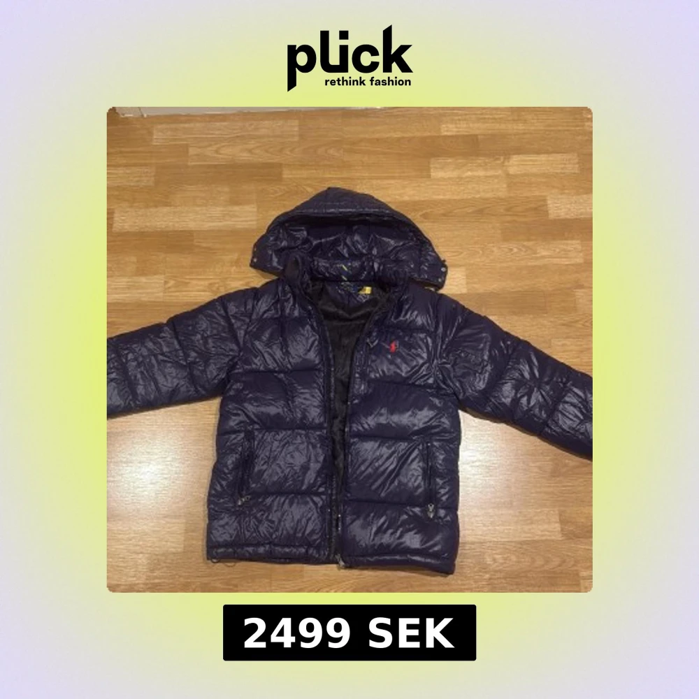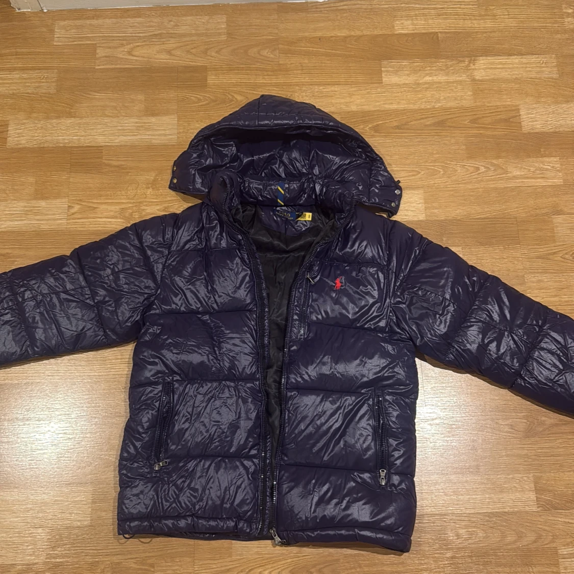 Säljer en mörkblå pufferjacka från Polo Ralph Lauren med huva och dragkedja. Jackan har två fickor med dragkedja och klassisk röd logga på bröstet. Materialet är glansigt och känns lätt men ändå varmt, perfekt för kyliga dagar.