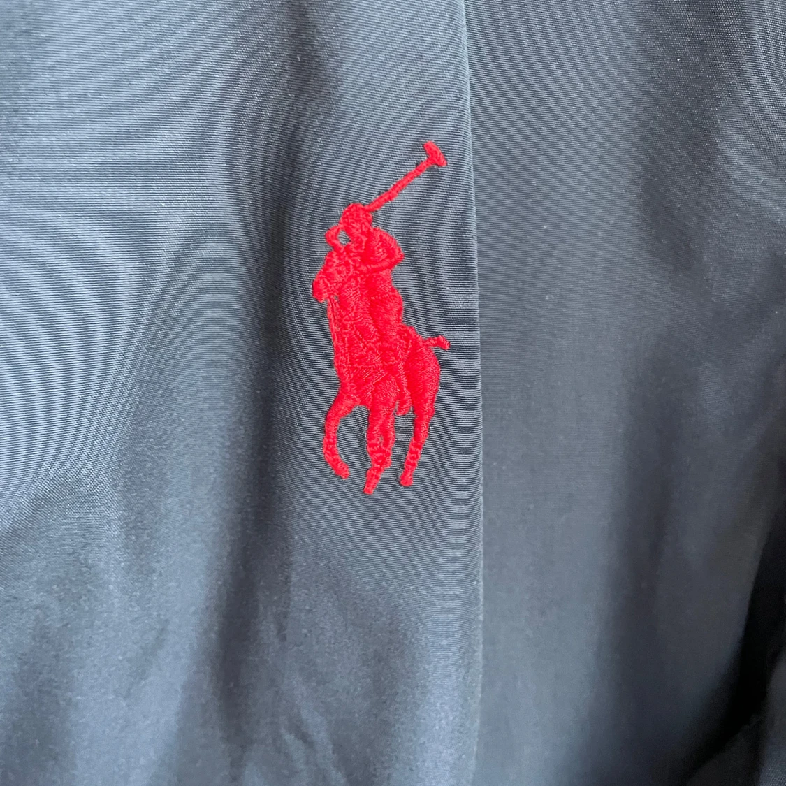 Säljer denna snygga svarta ”windbreaker” jacka från Ralph Lauren. Jackan har inga defekter förutom att sömmarna gått sönder, ( se bild 2 ). Jackan passar någon som bär storlek S. Kvitto medföljer men pga defekten på andra bilden är jackan billigare. Skriv om ni har fler frågor🙌🙌