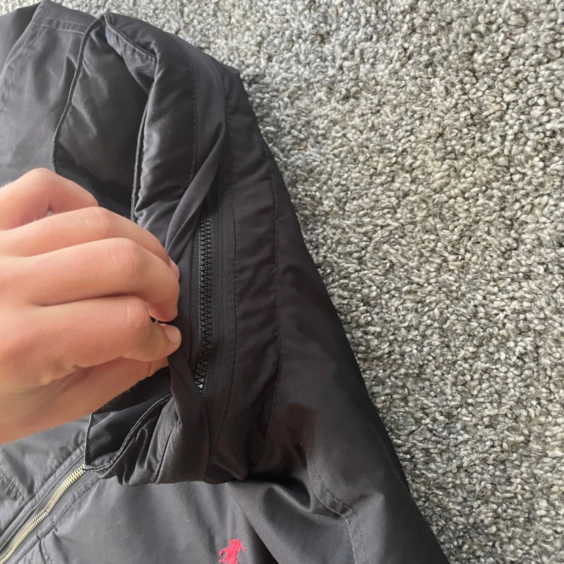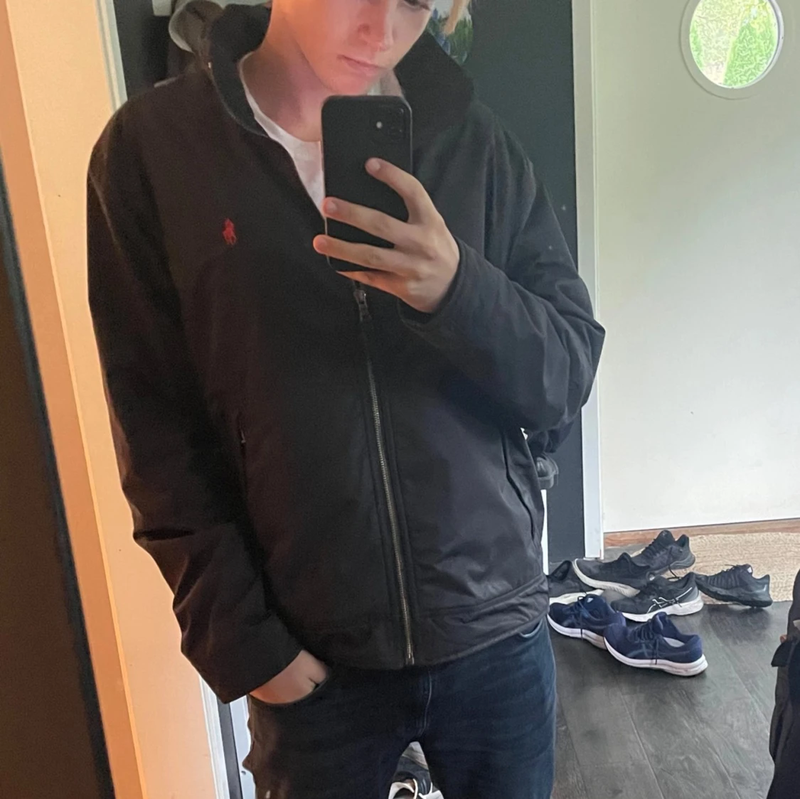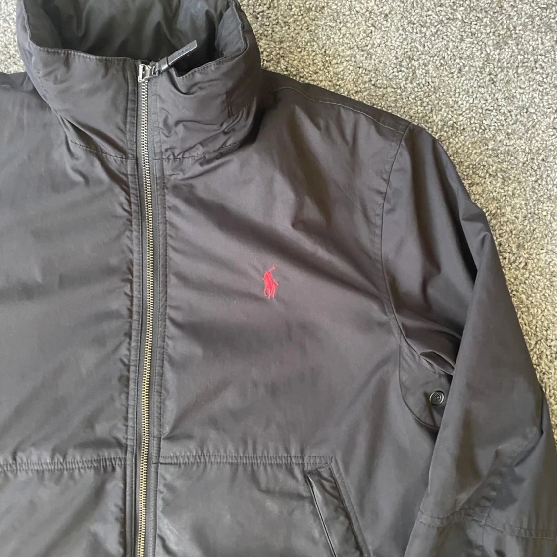 Ralph lauren jacka som är som en vindjacka fast tjockare går även att dra en dragkedja så får den en luva som du ser på en bild. Riktigt snygg och väldigt bra skick. Skriv för fler frågor priser kan alltid diskuteras! Storlek M passar S