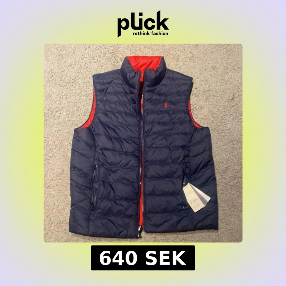 Säljer en snygg och vändbar dunväst från Ralph Lauren i blått och rött. Västen har en dragkedja framtill och är perfekt för att hålla värmen lite under våren. Den ikoniska loggan syns på bröstet. Passar perfekt för en stilren look!