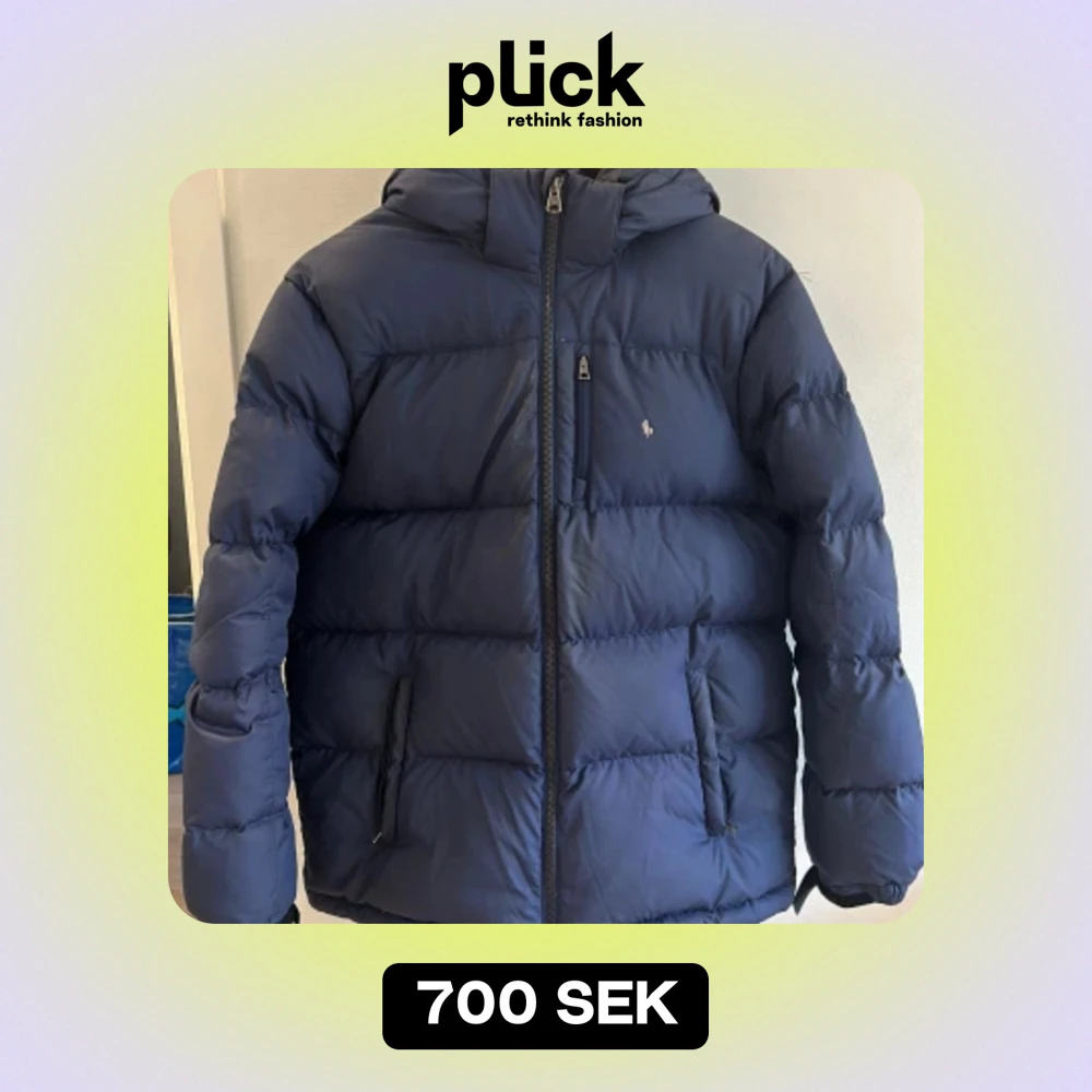 Snygg tidslös Ralph Lauren dunjacka i stl 164. Mörkblå. Lite sliten i trycket och i behov av en tvätt ! Enfärgad. Min son hade den när han var 13-15 år och han är normalväxt.