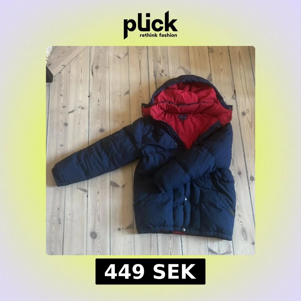 En clean mörkblå pufferjacka med några slitningar på ärmarna, men annars bra skick. Är ungdomsstorlek, passar ca 170-175cm.