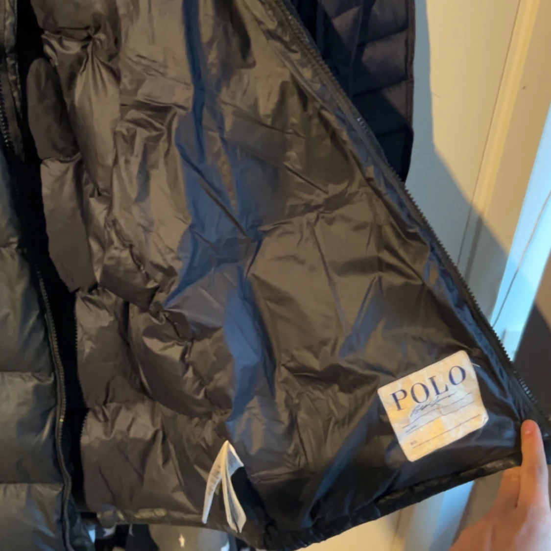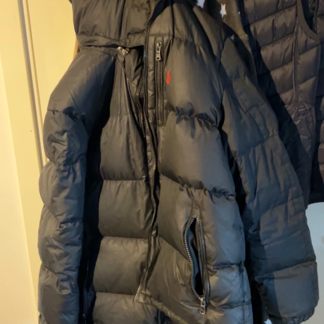 Säljer en svart dunjacka från Polo Ralph Lauren i storlek XS Jackan är perfekt för kalla vinterdagar med sin tjocka vaddering och stilrena design. Den har en dragkedja framtill och flera praktiska fickor. Passar både till vardags och mer uppklädda tillfällen. Kom dm för fler bilder, kan gå ner lite i pris vid snabb affär. Den har några små hål i armarna men inget man märker så tydligt.