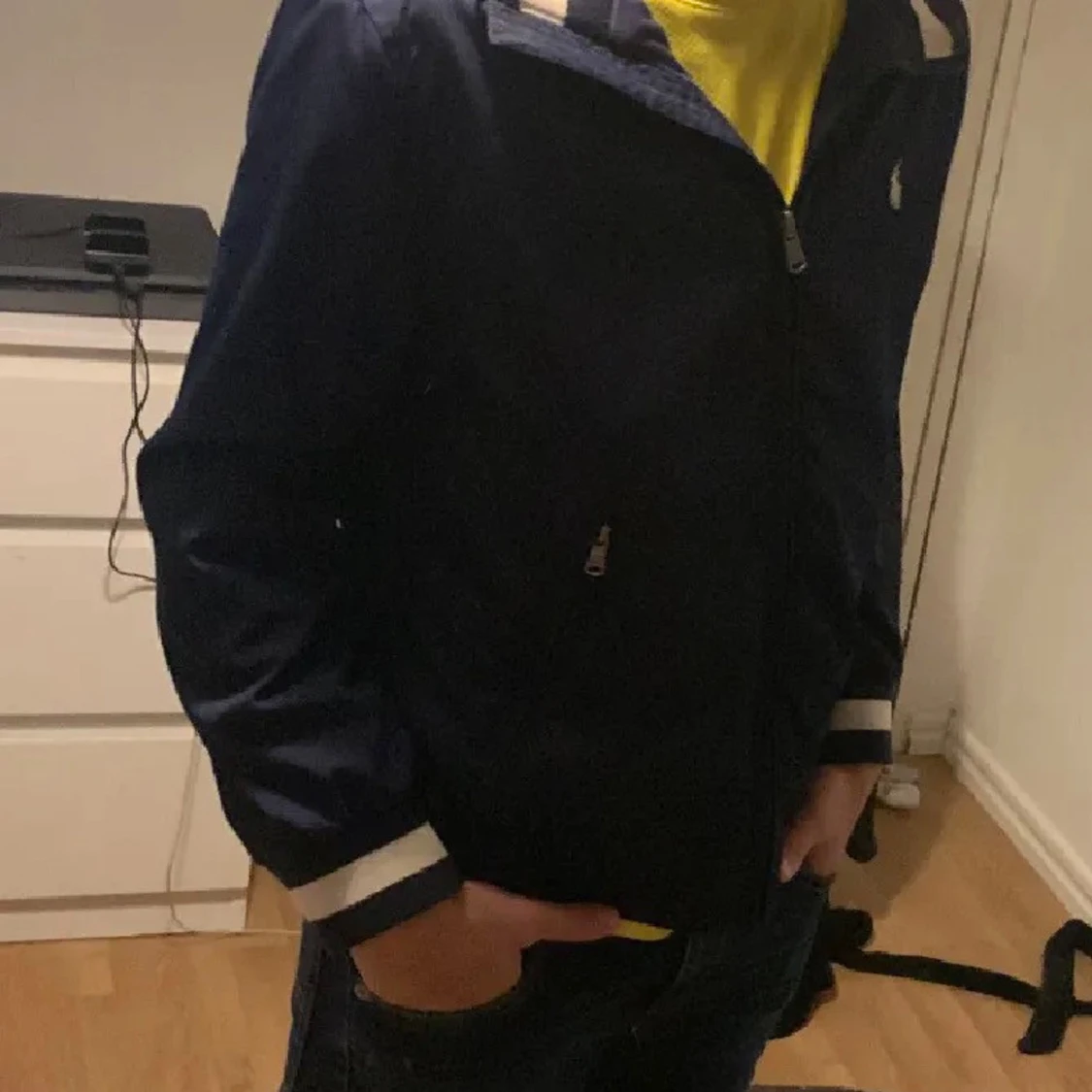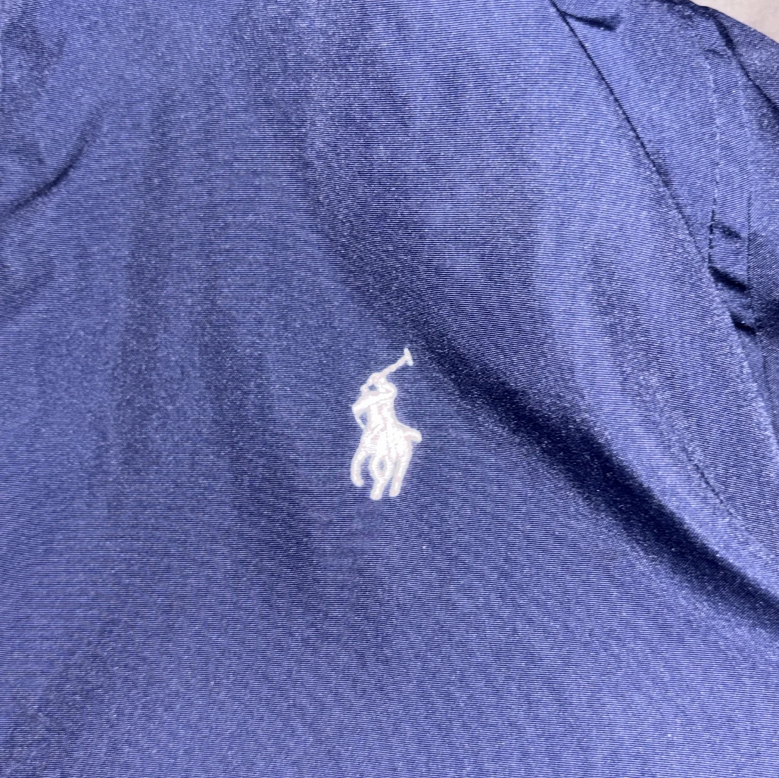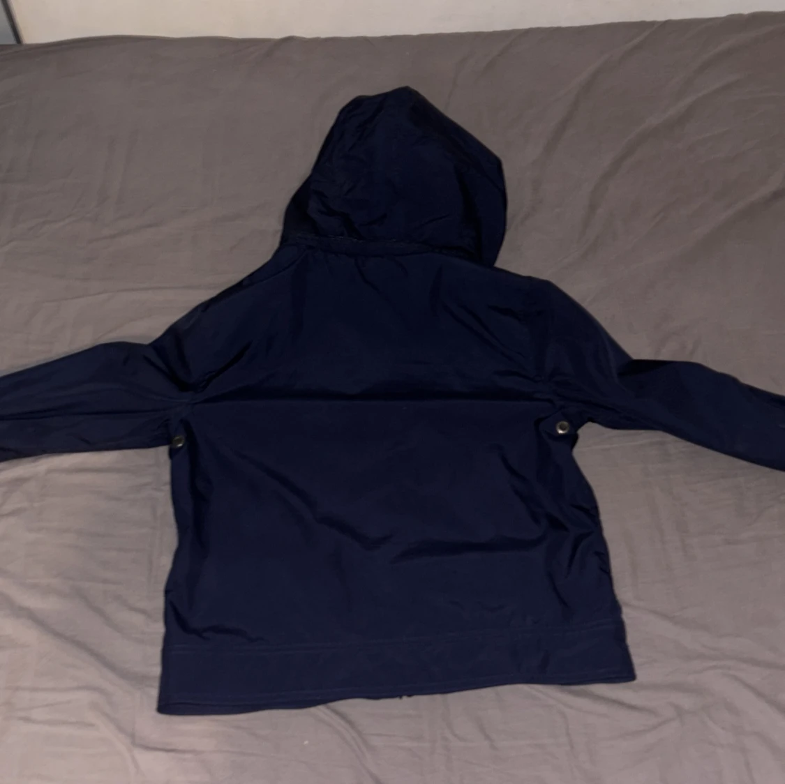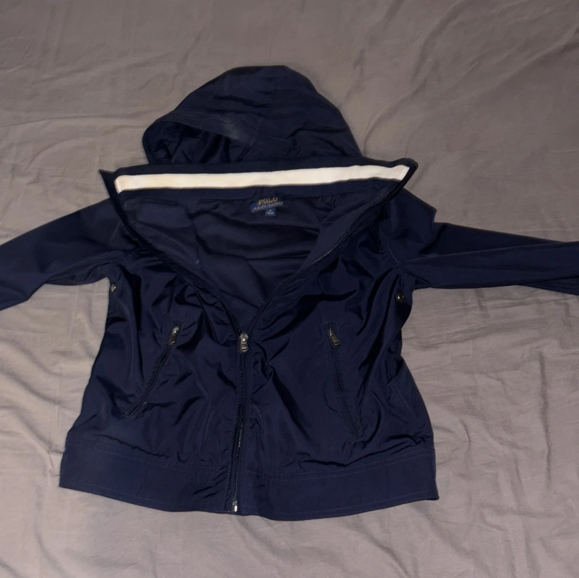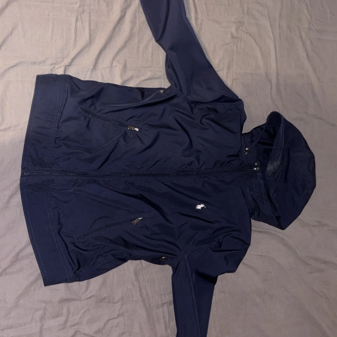 Snygg mörkblå vindjacka från Polo Ralph Lauren med huva, dragkedja och flera praktiska fickor med dragkedja. Jackan har det klassiska broderade Polo-loggan på bröstet och är tillverkad i lätt polyester. Perfekt för blåsiga dagar. Lägg gärna rimliga prisförslag