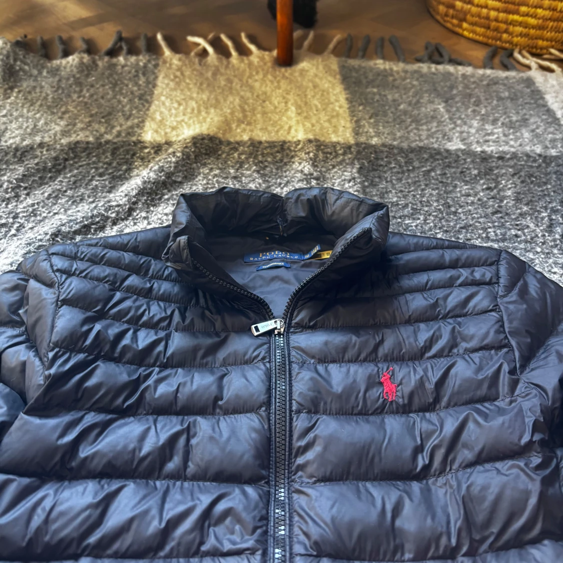 Stilren svart dunjacka från Ralph Lauren i klassisk modell. Jackan har lätt fyllning som gör den både varm och smidig – perfekt för höst, vår och milda vinterdagar. ✔️ Äkta Ralph Lauren ✔️ Svart med röd logga på bröstet ✔️ Två dragkedjefickor fram ✔️ Dragsko i nederkant för bättre passform Skick: Väldigt fint begagnat skick, endast ett litet hål längst ner på jackan [se bild 5] Storlek: [xs] Nypris ca 4199 kr. Mitt pris: 2199 kr. (Prutbart)