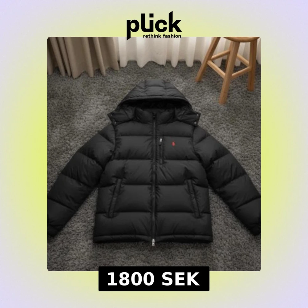Svart pufferjacka från Polo Ralph Lauren med röd broderad logga på bröstet. Jackan har huva, tvåvägsdragkedja och flera fickor. Materialet är syntet och polyester, perfekt för kalla dagar. Klassisk och stilren design med RL-detalj på dragkedjan.