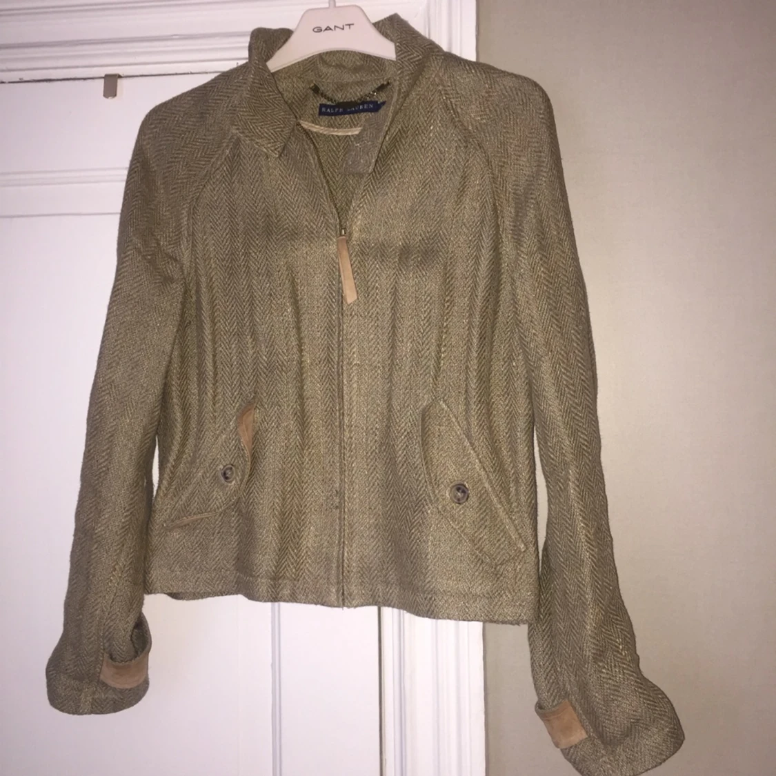 Jacka i 100% linne från Ralp Lauren med detaljer i ljusbrun mocka. Nypris var drygt 6.000kr. Skicka meddelande om du önskar fler bilder!