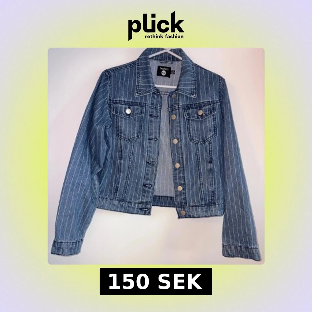 Snygg blå jeansjacka från Boohoo med vita vertikala ränder. Klassisk modell med krage, bröstfickor med knappar och silverfärgade tryckknappar framtill. Jackan har lång ärm och är tillverkad i jeansmaterial. Perfekt för dig som vill ha en cool och tidlös look.