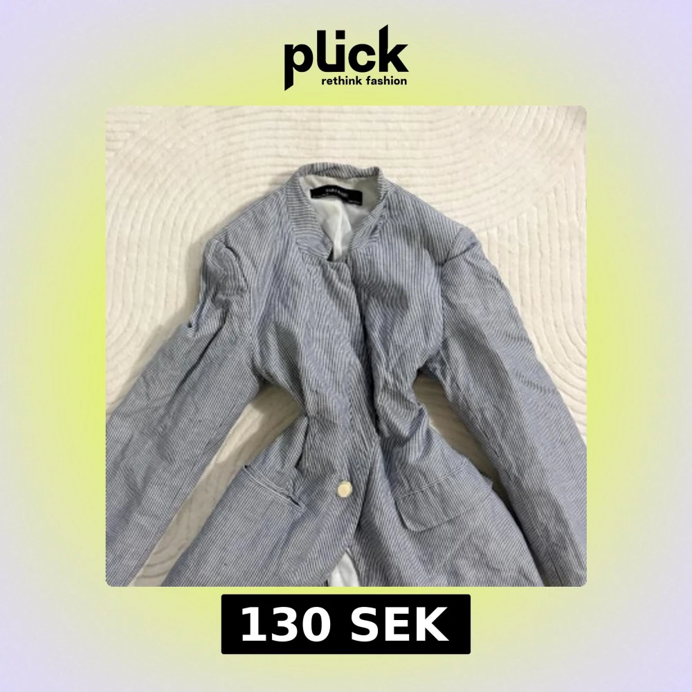 Snygg kavaj från Zara Basic i blått och vitt med smala ränder. Modellen har lång ärm, en knapp framtill och två fickor. Materialet känns lätt och fräscht, perfekt för dig som gillar stilrena och klassiska vibbar.