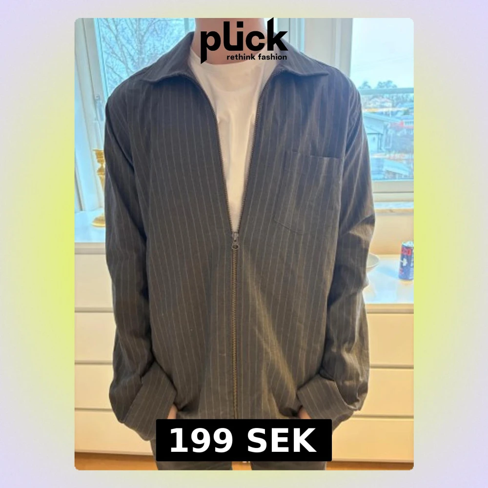 Snygg grå overshirt från John Henric med vita vertikala ränder och dragkedja framtill. Jackan har klassisk krage, bröstficka och långärmad design. Perfekt att slänga på över en t-shirt för en chill och stilren look.