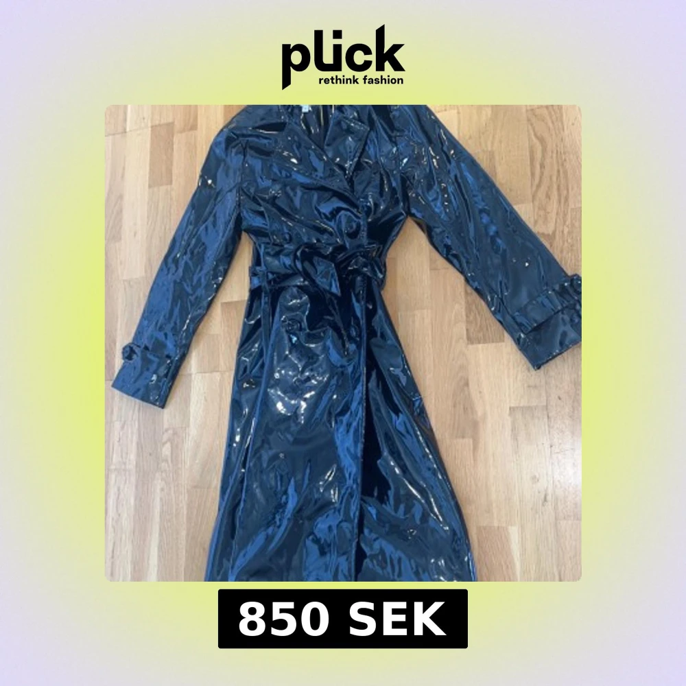 Säljer en svart glansig lack trenchcoat med knytning i midjan, två fickor & knappar! Helt slutsåld , från Rebecca Stella storlek M 🖤 använd 1 gång och fick många konplimanger!