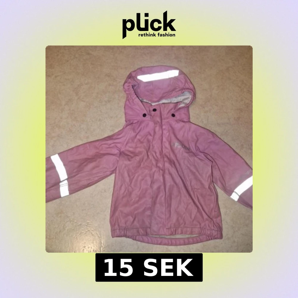Rosa regnjacka från Tribute med huva och reflexdetaljer på ärmar och rygg. Jackan är vattentät och har dragkedja framtill med skyddande vindslå. Perfekt för regniga dagar och har en skön passform för lek utomhus. Jackan har sina skavanker men fyller fortfarande sin funktion.