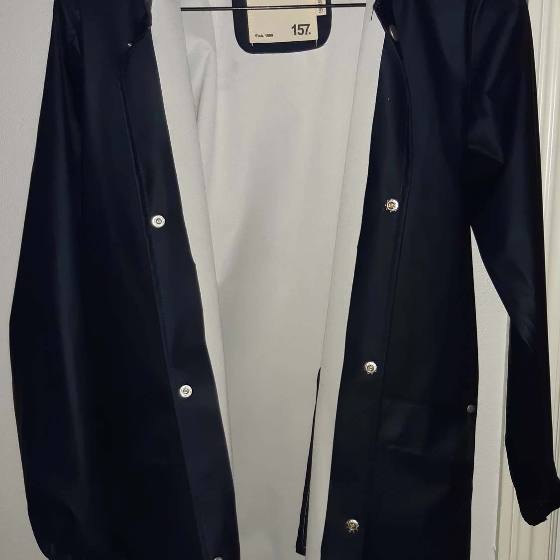 Säljer en regn jacka I stl 150/160 i marinblå färg ifrån lager 157 köpt för 400 kr säljer för 100 kr