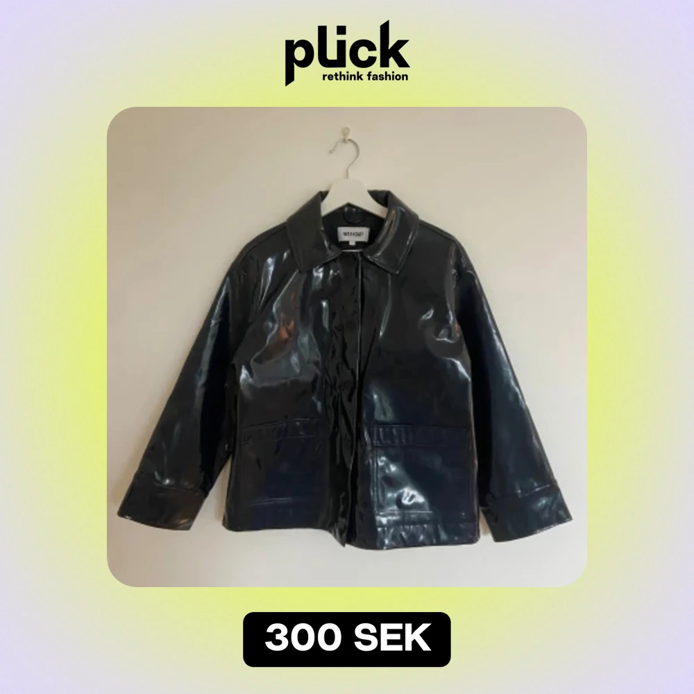 Mörkblå regnjacka från weekday i glansigt material. Använd 2ggr. Storlek s.