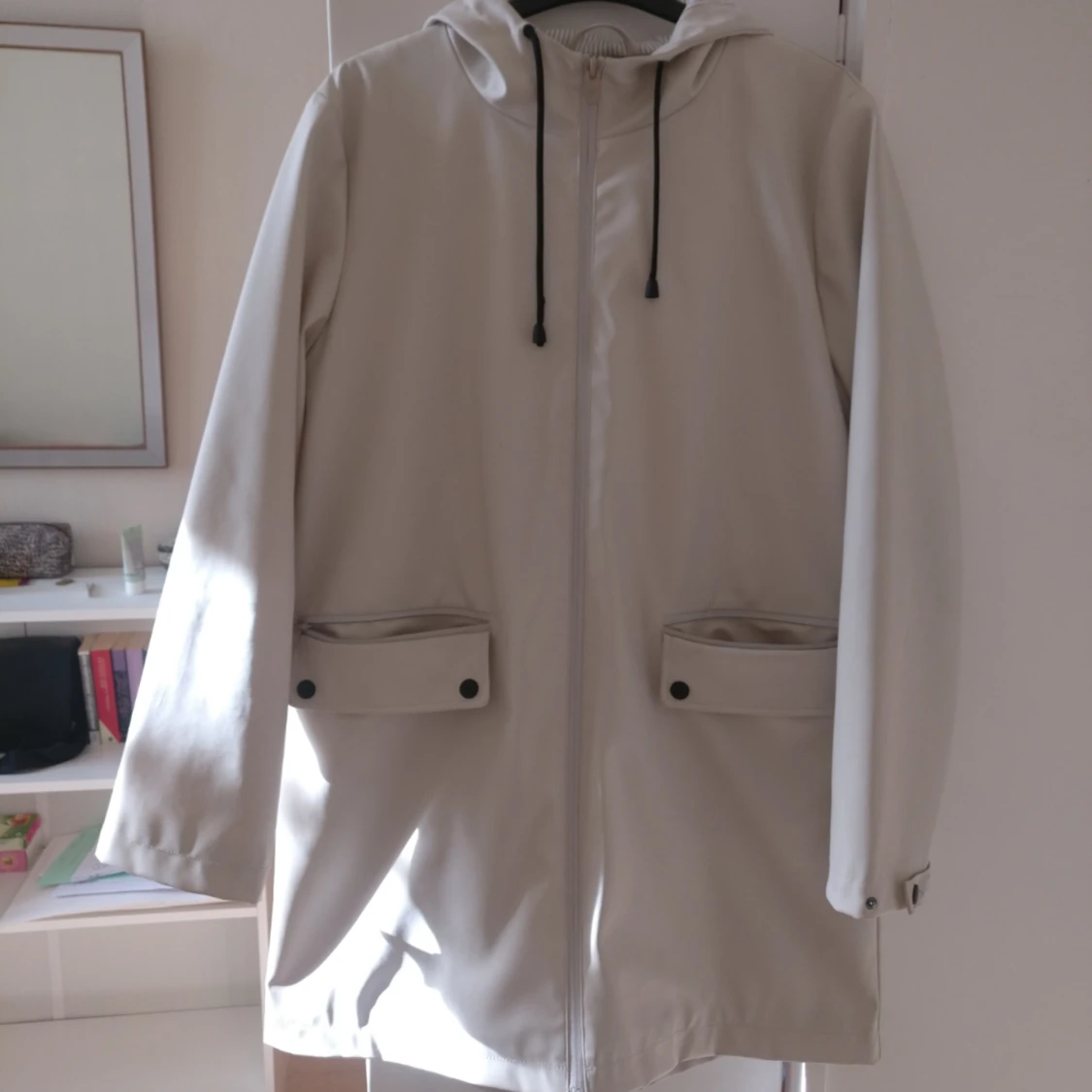 Jättefin regnjacka från zara, har tyvärr klantat mig (bild två) och fått ett litet steck på ärmen från en penna!