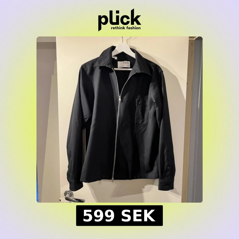 Snygg navy jacka från Selected Homme med dragkedja framtill och en bröstficka. Jackan har en klassisk krage och långa ärmar, perfekt för en stilren look.