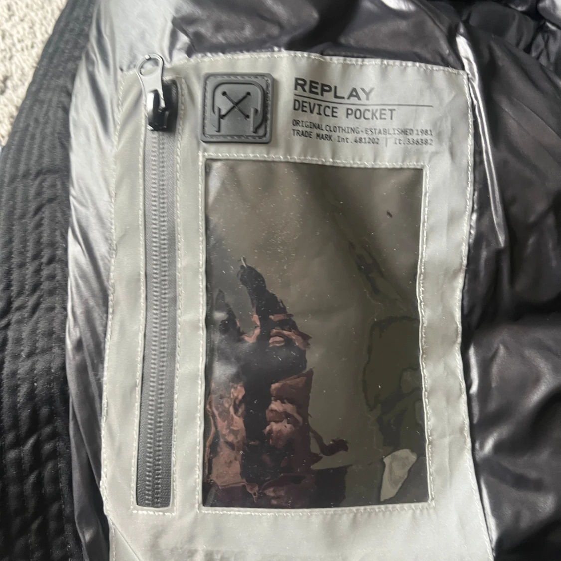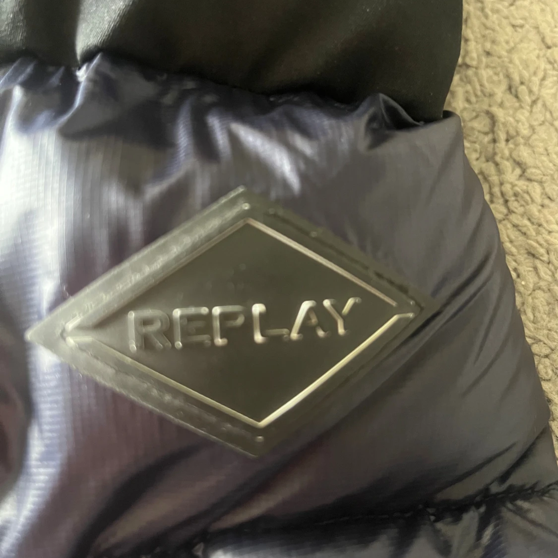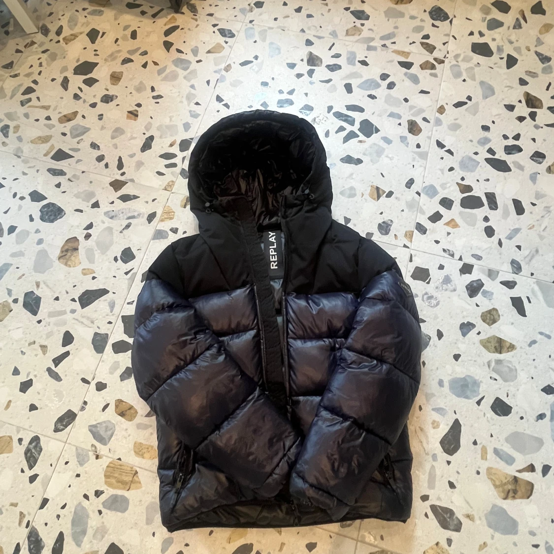 Säljer en fet pufferjacka från Replay i svart och mörkblått. Jackan har huva med tryck, dragkedja framtill och cool device pocket på insidan. Perfekt för kalla dagar när du vill hålla stilen och vara varm. Oversized känsla och riktigt skön passform.