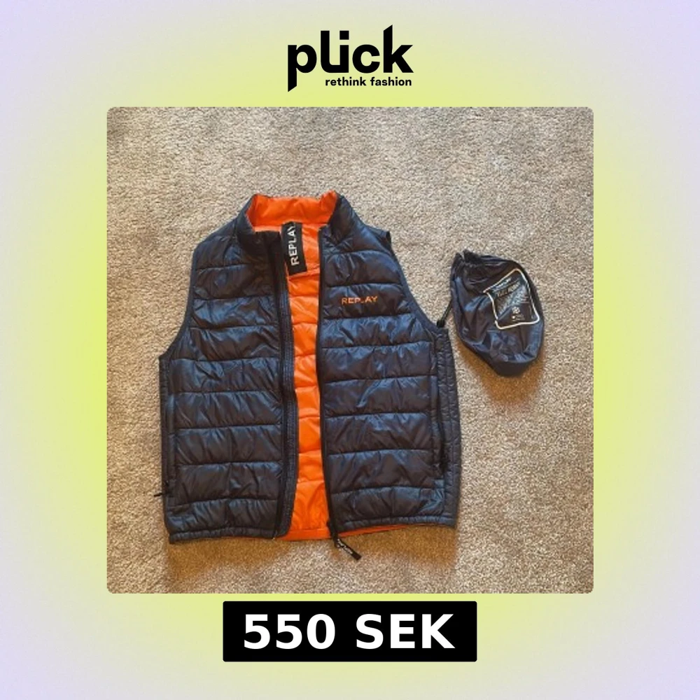 Snygg svart dunväst från Replay med quiltad design och orange insida. Västen har dragkedja framtill, hög krage och Replay-logga på bröstet. Levereras med tillhörande packpåse, perfekt att ta med på språng. Lätt och smidig modell.