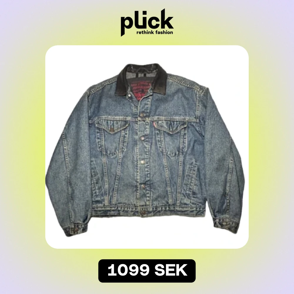 En tvärfet och stilren fodrad jeansjacka med skinnkrage. Storlek Large passar M/L Skick: 8/10