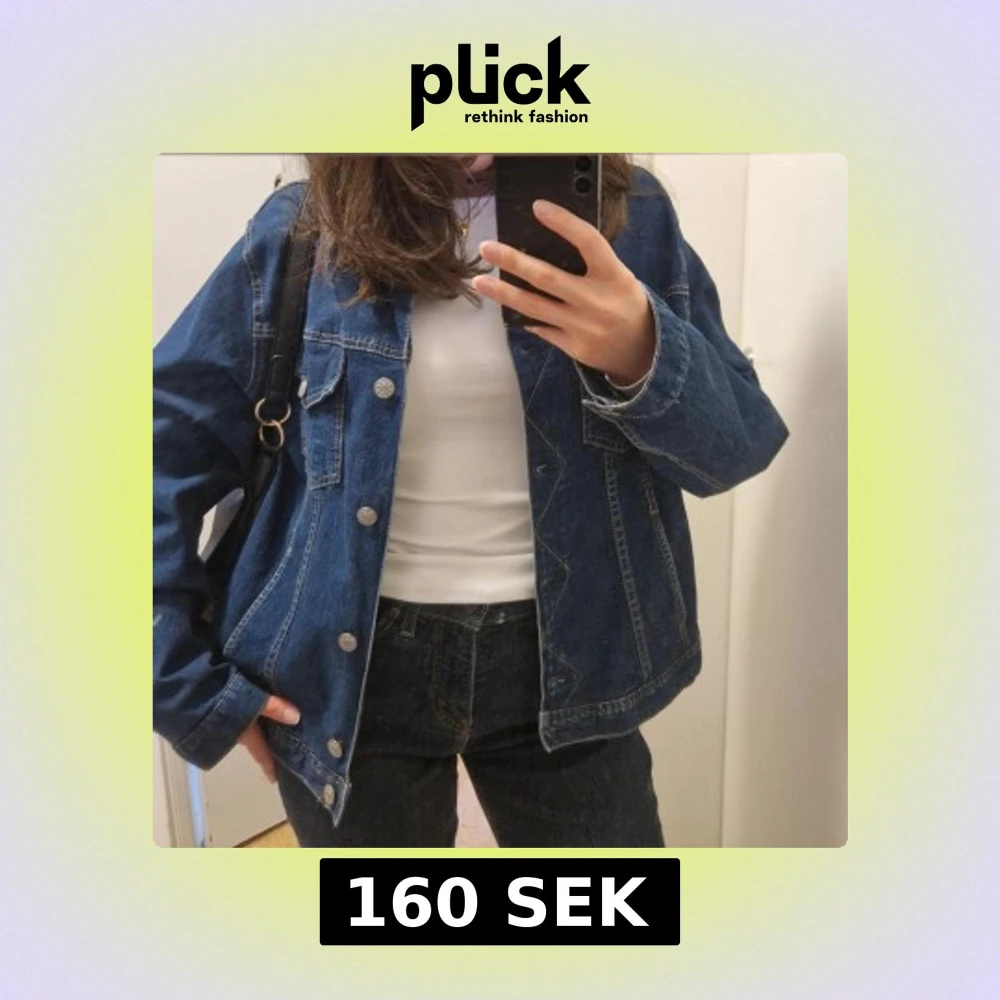 Mörkblå jeansjacka i lite mer oversized-modell, perfekt nu till våren🥰🌸 står ingen storlek men passar mig bra som brukar ha storlek S😊
