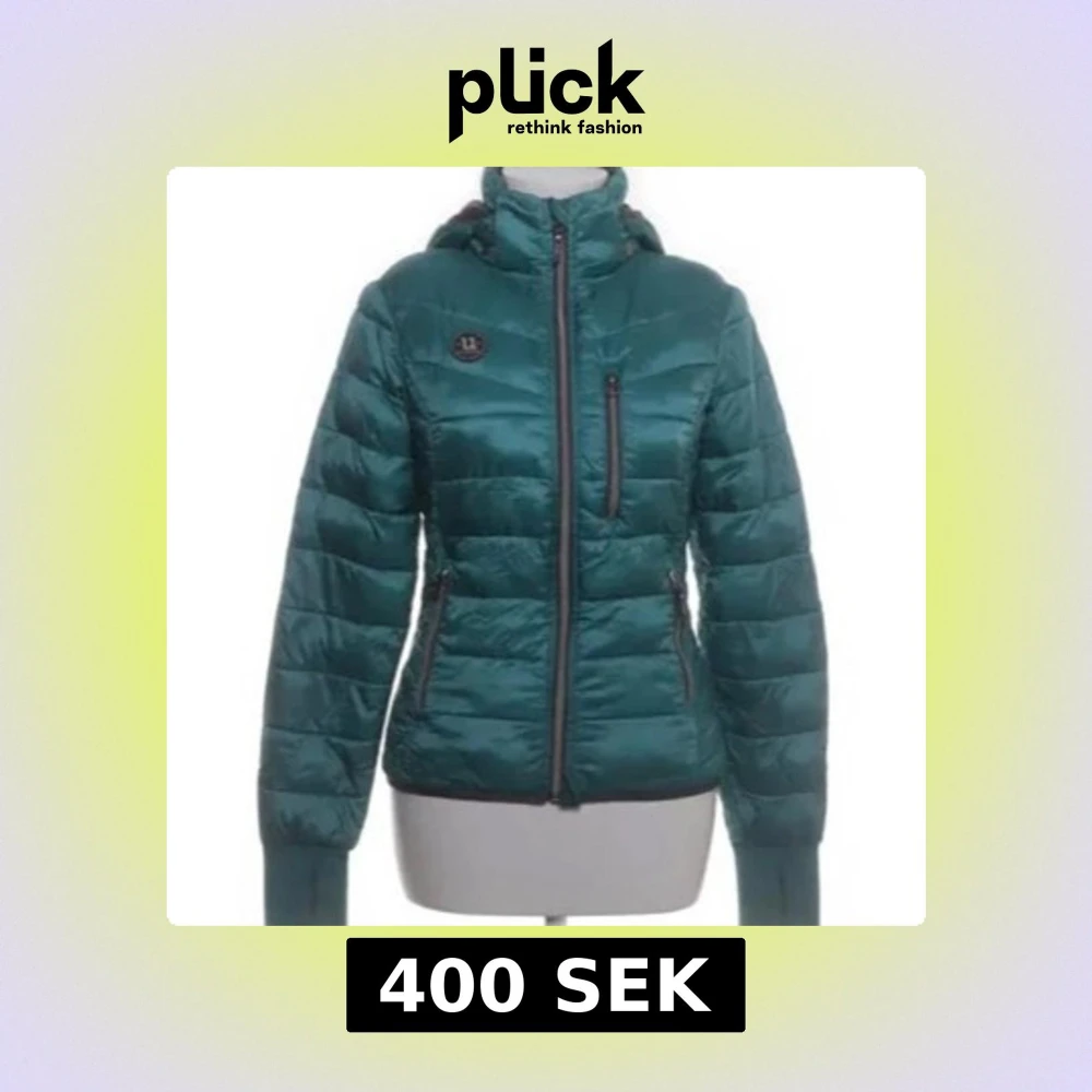 Snygg grön pufferjacka med huva och dragkedja framtill. Jackan har quiltad design, tre fickor med dragkedja och en liten patch på bröstet. Perfekt för kyliga dagar och ger en sportig vibe. OBS!⚠️ inte min bild. Skriv om ni vill ha fler bilder, dock är den exakt som på bilden men lite större. 💖