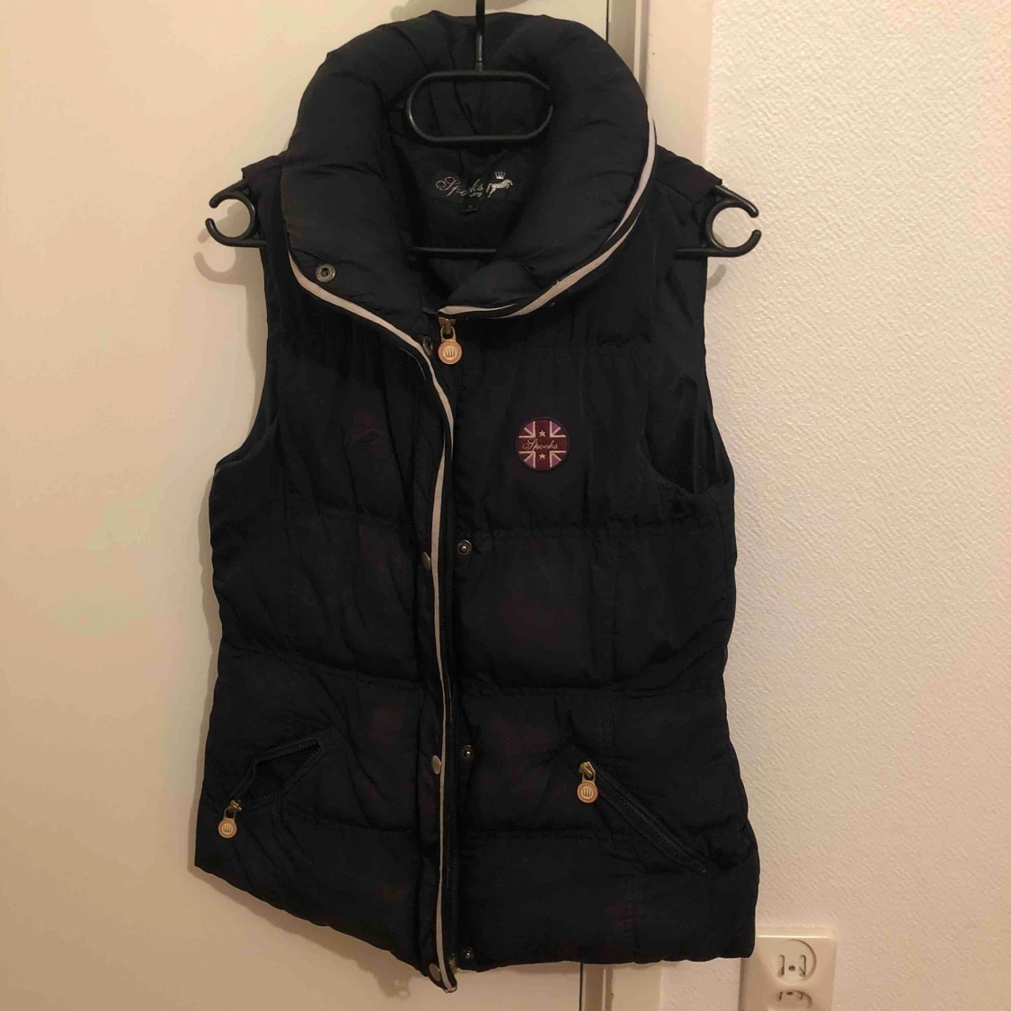 Jättefin väst från spooks, hel men lite skitig, tvättar såklart innan jag skickar. Mörkblå med blå dragkedjor och rosa detaljer på kjedjorna.