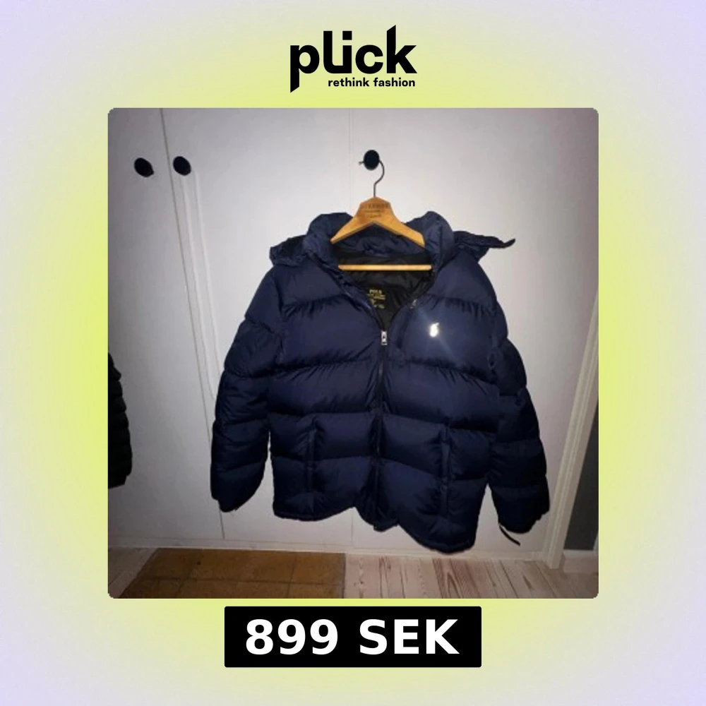Säljer en mörkblå pufferjacka från Polo Ralph Lauren i storlek 170 Jackan har huva, dragkedja framtill och klassisk quiltad design. Perfekt för kalla dagar och riktigt snygg streetstil. Skriv för mera bilder har två hål som jag skickar bild på privat