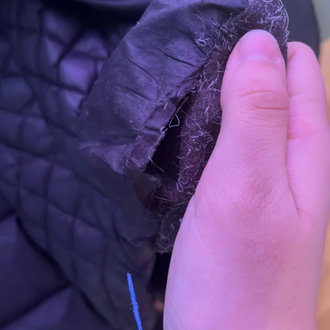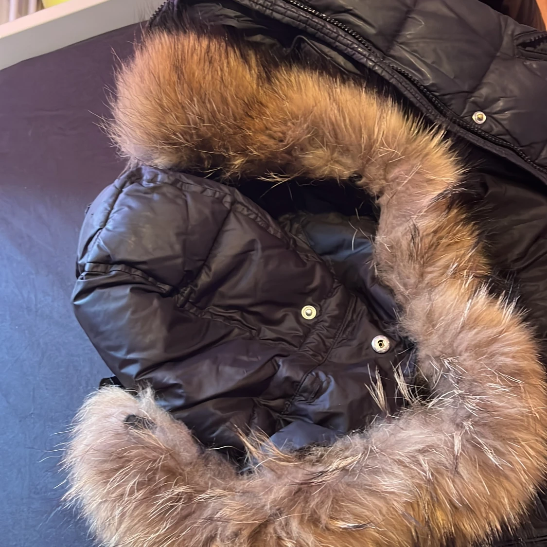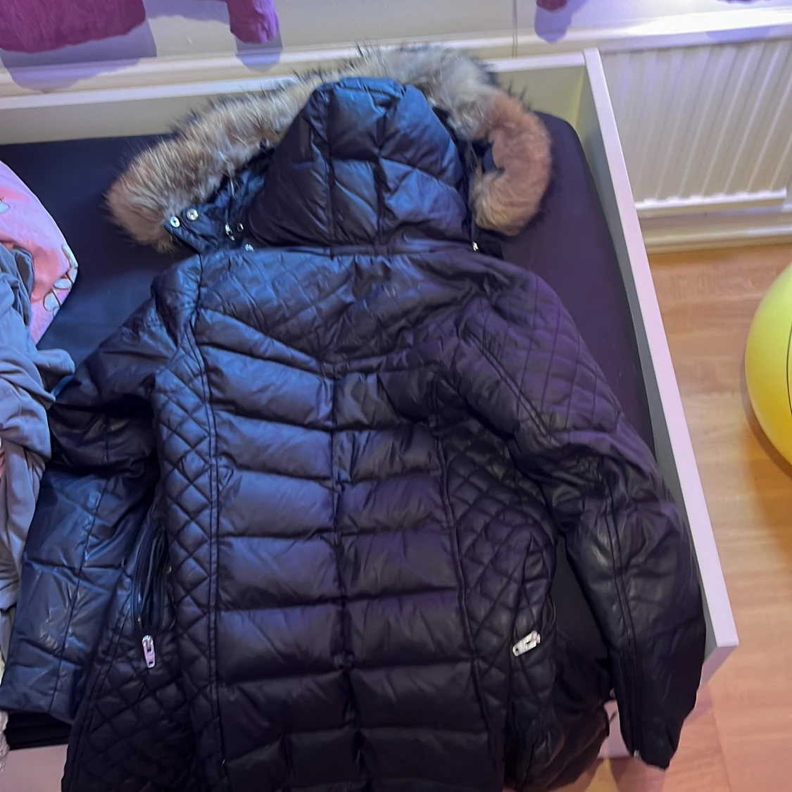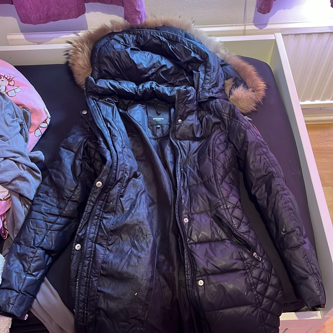 En rock and blue jacka den har ett hål i fickan men det borde gå att sy ihop och hänggrejen är sönder.Den är svart me Bech päls som man ser på sista bilden