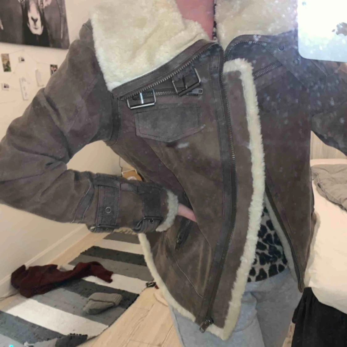 Säljer denna skitsnygga bikerjacka / mockajacka från rock and Blue! Storlek 38 (m), kan även passa en stor s, är dock för stor för mig som är en normal s. Supersnygg, trendig och varm med äkta mocka på utsidan🥰