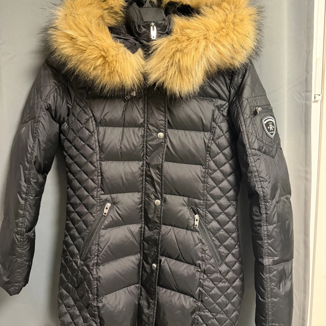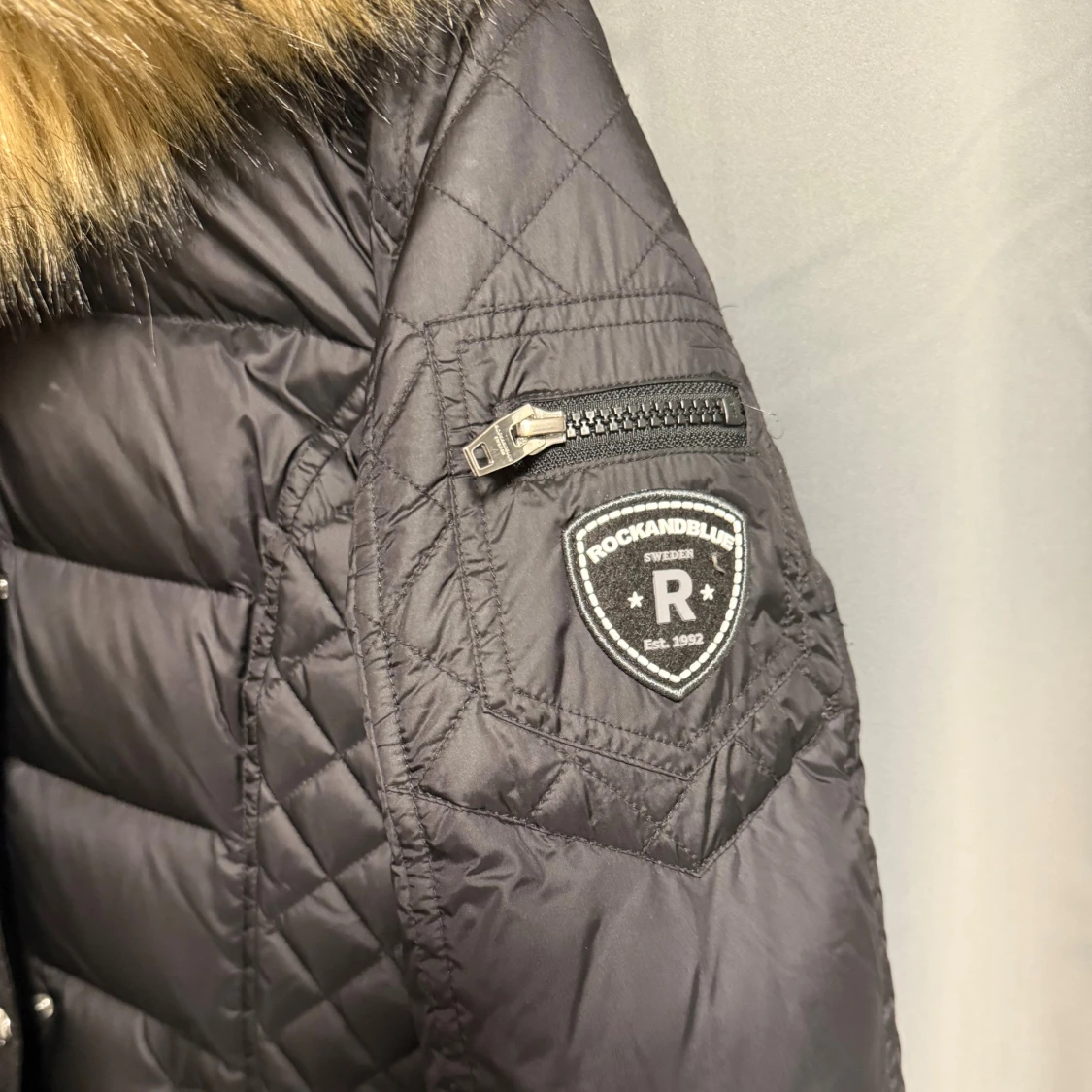 snygg dunjacka från Rockandblue med stor fluffig päls, strl M/38, använd 2 3 gånger den är fortfarande som ny och köpt för 3499
