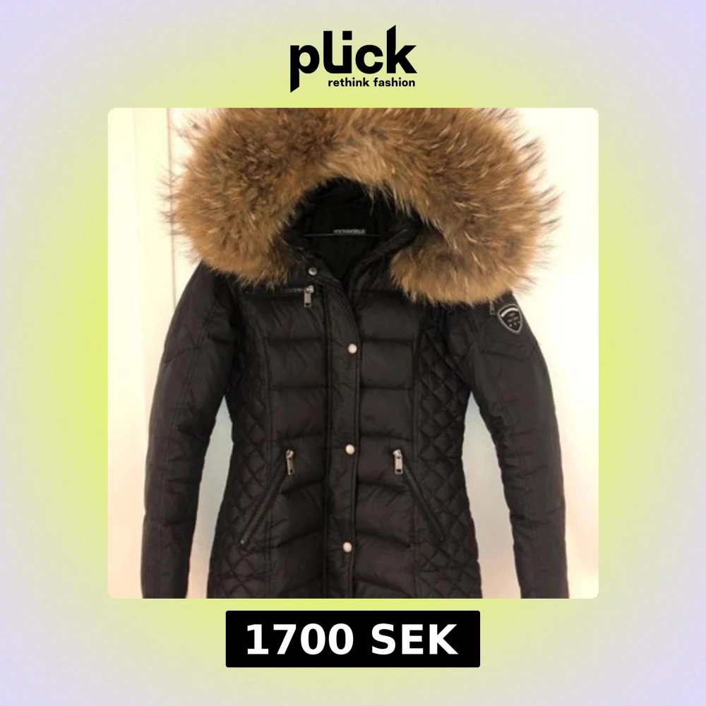 Snygg svart dunjacka med stor fluffig äkta päls på huvan och quiltade detaljer på sidorna. Jackan har dragkedja, knappar och två snedställda fickor med dragkedja. Märkespatch på ärmen ger en cool touch. Perfekt för kalla vinterdagar. Köpt för 3799kr, säljes för 1700kr men pris kan diskuteras.