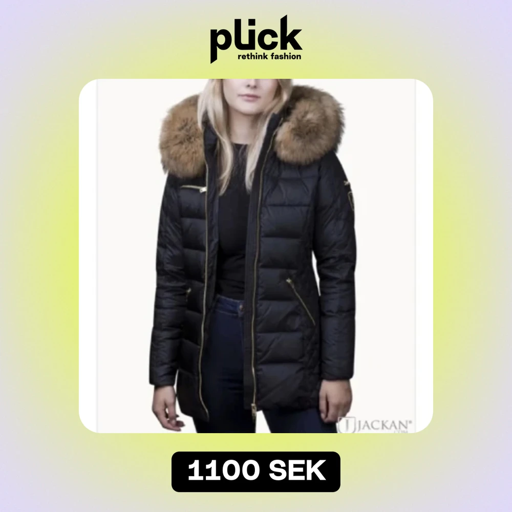Svart dunjacka (vinterjacka) från Rockandblue i storlek 34. Brun äkta päls och gulddetaljer. Enbart använd en vinter alltså i nyskick. Köpt för 4299kr. Säljer billigare vid snabb affär.