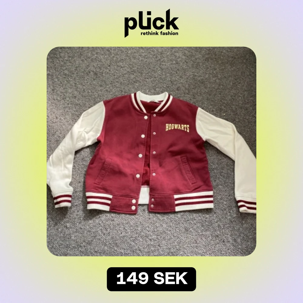 Säljer en snygg röd och vit bomberjacka med Hogwarts-tema. Jackan har långa vita ärmar och en röd kropp med vita detaljer. På framsidan står det 'Hogwarts' i guld och på baksidan finns Hogwarts vapensköld. Perfekt för alla Harry Potter-fans! Jackan har knappar och ribbade muddar vid ärmslut och nederkant. köparen betalar för frakt