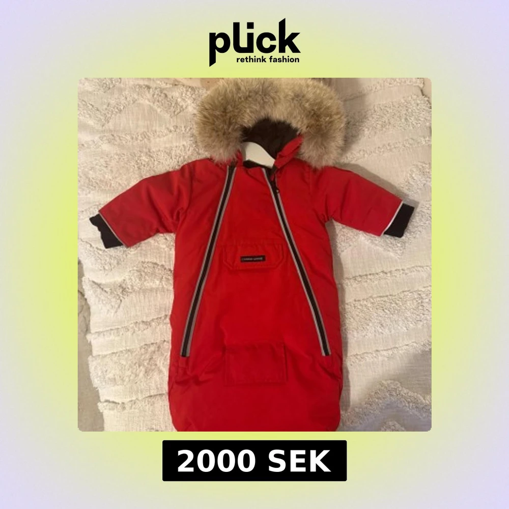 Säljer en röd åkpåse Canada Goose med fluffig päls runt huvan och två långa dragkedjor framtill. Jackan har svart foder, praktisk ficka på magen och logotyp på ärmen. Helt ny oanvänd!! Nypris 590 euro , ~6900kr, säljes nu för endast 2000kr! Kvitto finns. Exklusiv o unik åkpåse som inte finns att få tag på mer! Vilket betyder att andrahandsvärdet kommer stiga! Storlek 0-3 månader men passar 0-6 månader