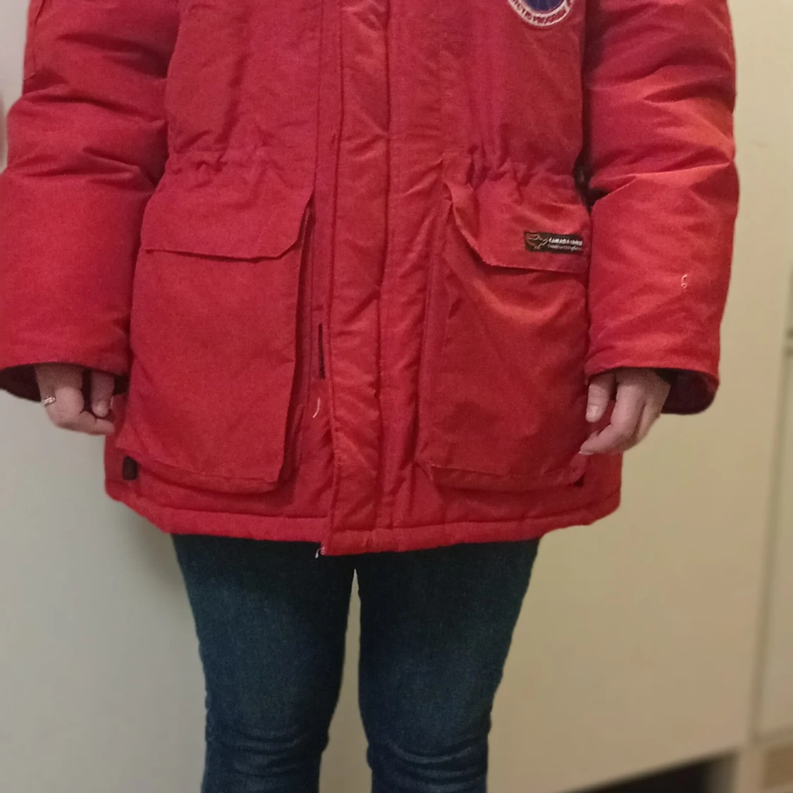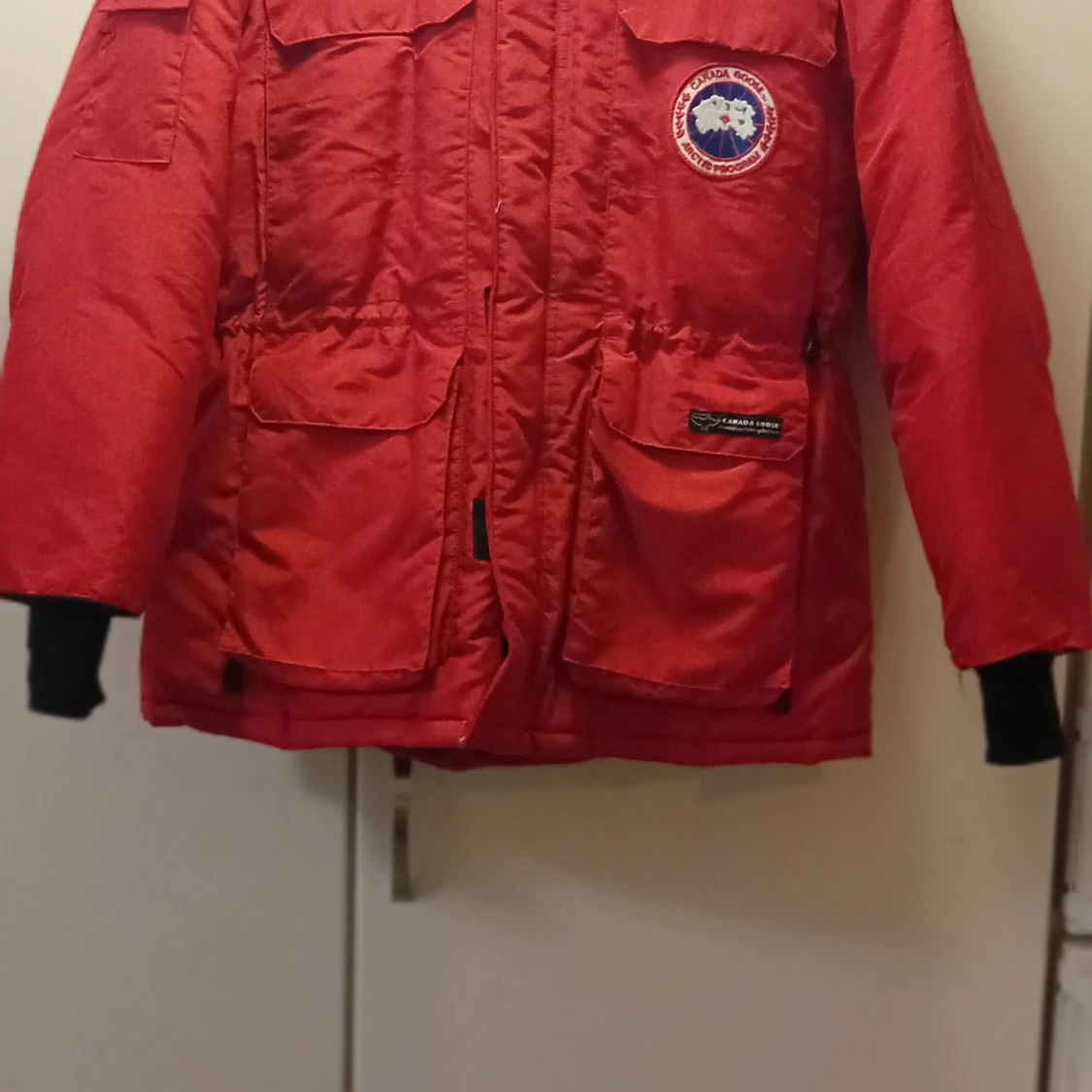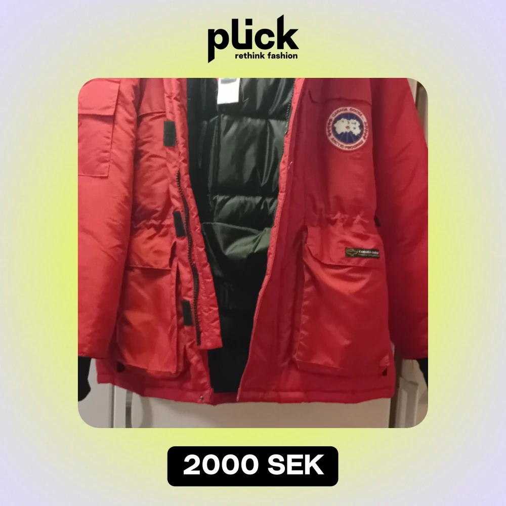 Säljer en röd dunjacka från Canada Goose med ikonisk logga på bröstet. Jackan har flera praktiska fickor och en dragkedja framtill. Perfekt för kalla vinterdagar med sitt varma dunfoder. jackan är äkta och har äktehetsbevis. storlek M men är lite stor I storleken så har man L så passar den också. fler bilder kan skickas och priset går att diskutera. Den finns I halmstad om man bor i närheten och vill kolla på den och testa den. pris 2000kr