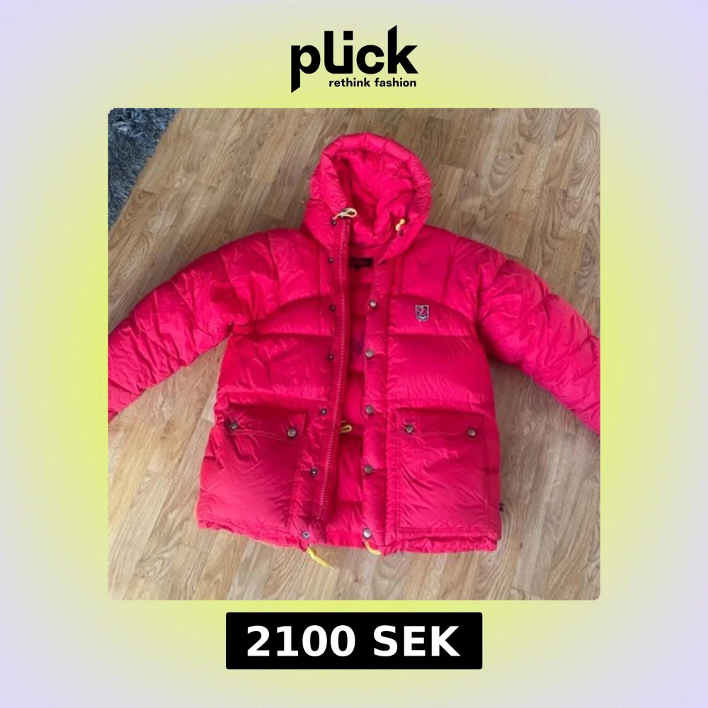 Säljer en snygg röd dunjacka från Fjällräven med huva och praktiska fickor. Jackan har både dragkedja och knappar. Som ni ser på bilderna har den små fläckar lite här och där på jackan. Inuti jackan finns det en stor text som ni ser på bilden, därav priset. Vid eventuella frågor eller funderingar kom privat