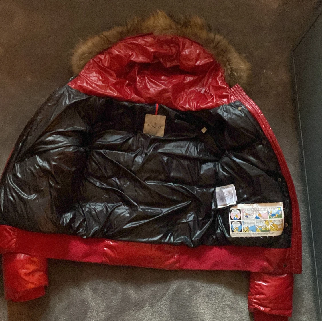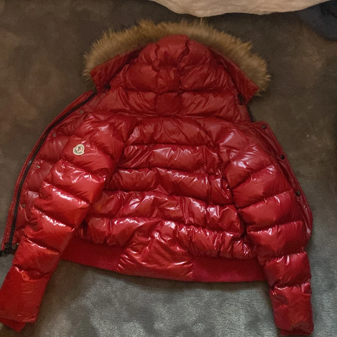 Säljer en snygg vinröd pepper grenoble dunjacka från Moncler med pälskantad huva. Jackan har en glansig finish och stängs med dragkedja och knappar. Den är i nyskick förutom minimal slitning på knapparna. Perfekt nu för vintern. Storlek 34/XS