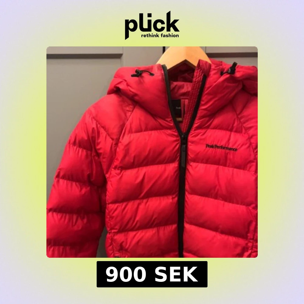 Snygg och varm röd dunjacka från Peak Performance med huva och dragkedja. Perfekt för kyliga dagar.