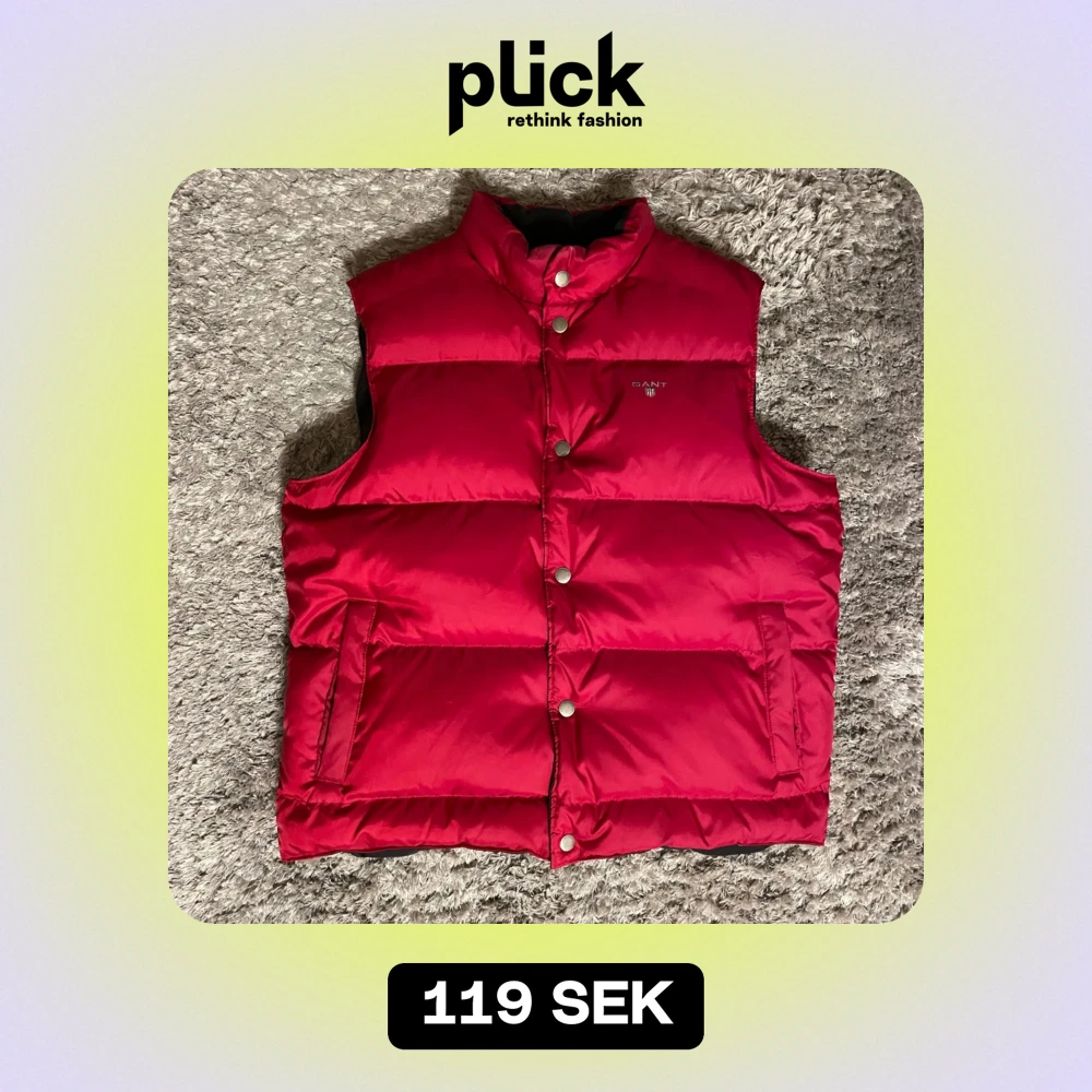Säljer en snygg röd dunväst från GANT i mycket bra skick. Västen har en klassisk design med knappar framtill och är perfekt för höst och vår. Den är varm och bekväm, idealisk för lager-på-lager-stil. Passar både till vardags och lite mer uppklädda tillfällen.