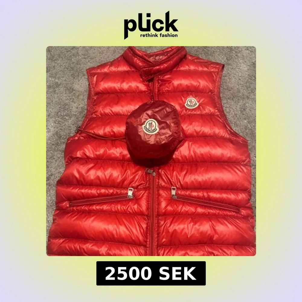 Säljer en riktigt fet röd dunväst från Moncler med den ikoniska logga på bröstet perfekt för sommaren. En moncler påse medkommer. Skicket är 8,5/10. Storlek 1 / XS/S ungefär. Kom privat för mer frågor. Sjävklart 100% äkta!