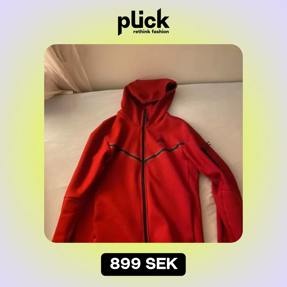 Säljer en snygg röd nike tech fleece med huva. Perfekt nu till hösten och vintern. Säljer den pågrund av att jag inte använder den så mycket sp den bara ligger i garderoben nu. Den är knappt använd och är i riktigt bra skick.