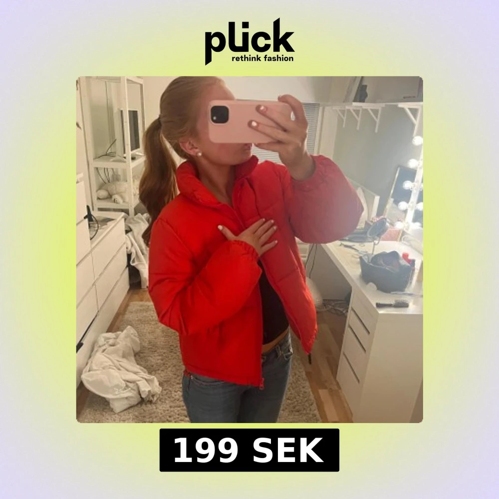 Säljer en snygg röd pufferjacka med dragkedja. Jackan har en hög krage och långa ärmar, perfekt för kyligare dagar. Den är både stilren och bekväm, ett måste i garderoben! Storlek 158/164 från Gina, passar mig som har storlek XS/S
