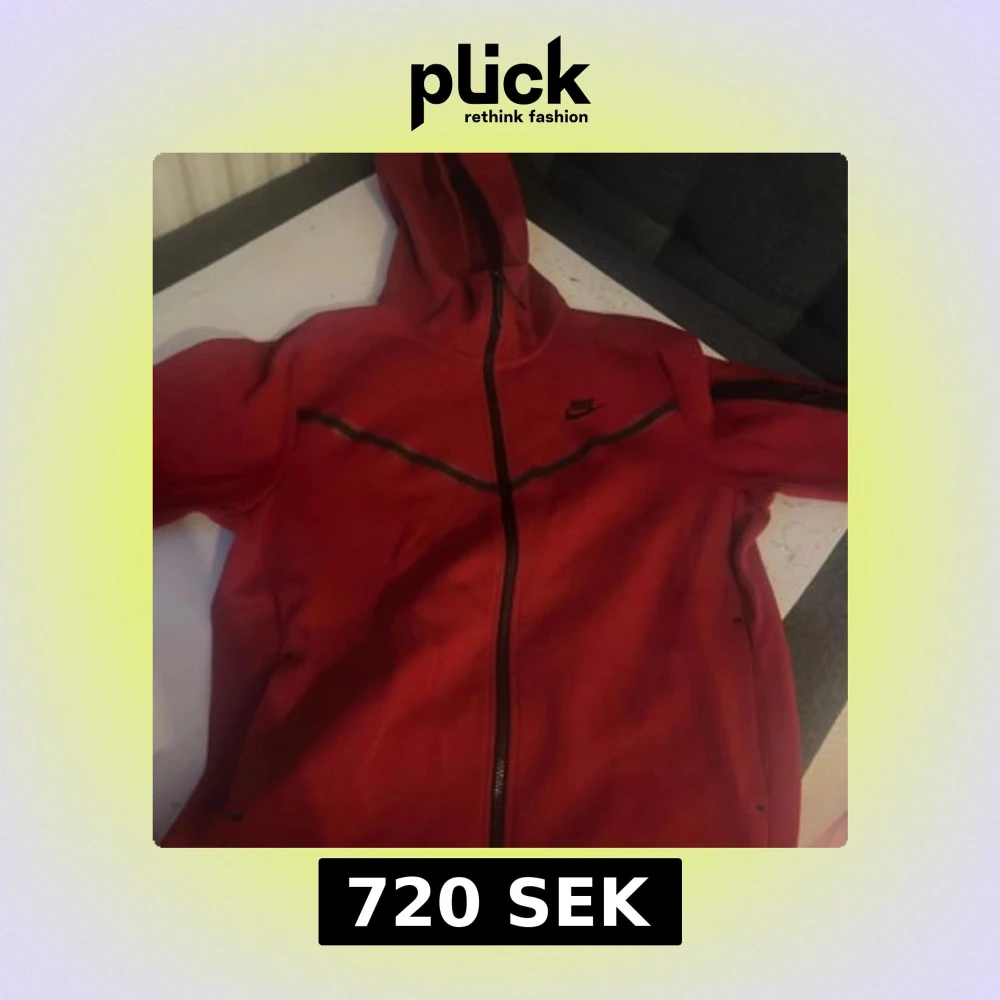 Snygg röd hoodie från Nike med dragkedja och huva. Perfekt för en sportig look. Svart Nike-logga på bröstet och svarta detaljer längs ärmarna.