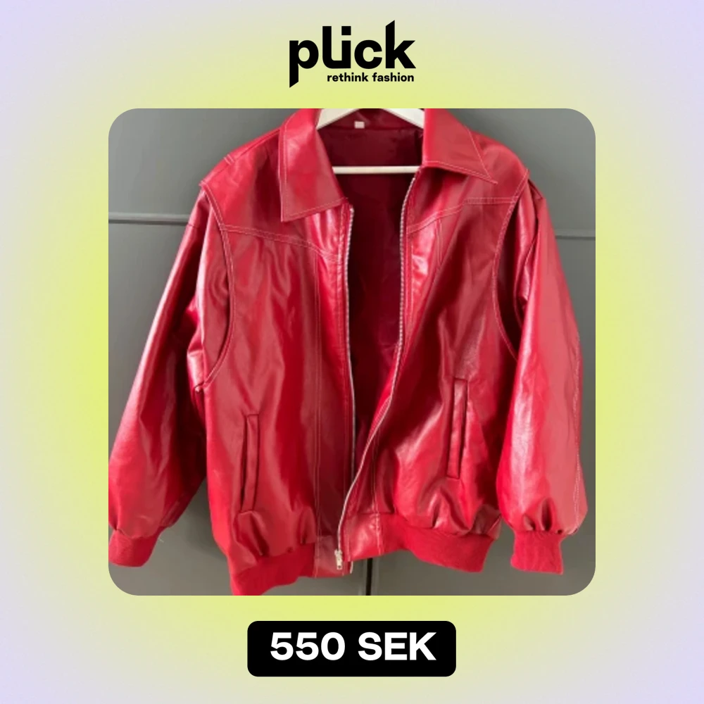 Hej! Säljer min röda läderjacka som köptes några månader sen från märket ThinkBig&Co (Original pris 980kr). Helt oanvänd och i perfekt skick. Storleken är oversize för en mer avslappnad look. Väldigt fin och perfekt att stylea outfiten ❣️