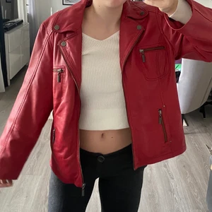 Röd skinnjacka från Saki, köpt vintage! Frakt tillkommer🤍🤍