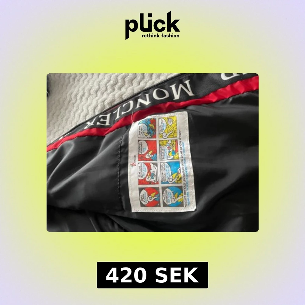 Säljer en röd Moncler dunväst med huva och svart innerfoder. Västen har två dragkedjeförsedda fickor, tydlig Moncler-logga på bröstet och stora Moncler-tryck längs insidan av kragen. Klassisk pufferstil och riktigt snygg detalj med serietidningsetikett på insidan.