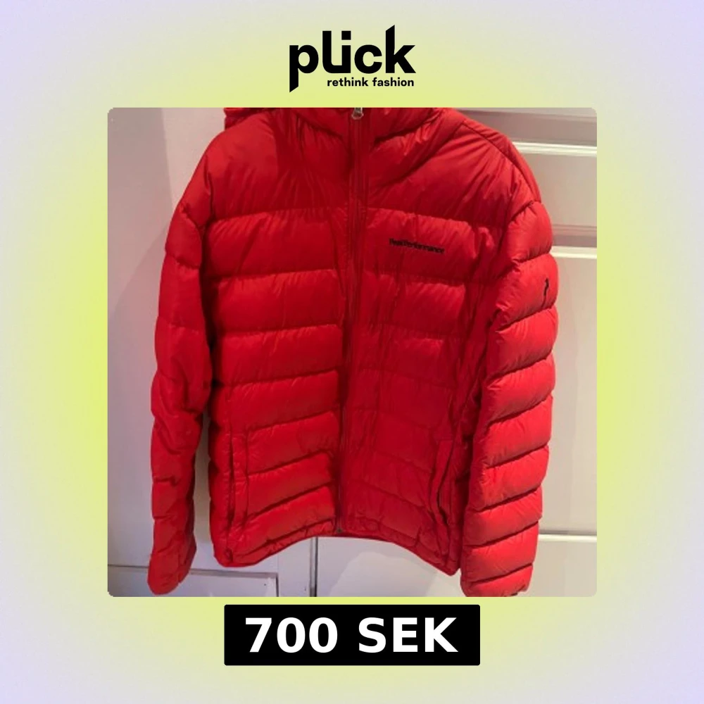 Riktigt snygg röd dunjacka från Peak Performance i storlek L. Jackan har huva, dragkedja framtill och klassisk pufferstil. Perfekt för kalla dagar och ger en cool look med sin starka färg och quiltade design.