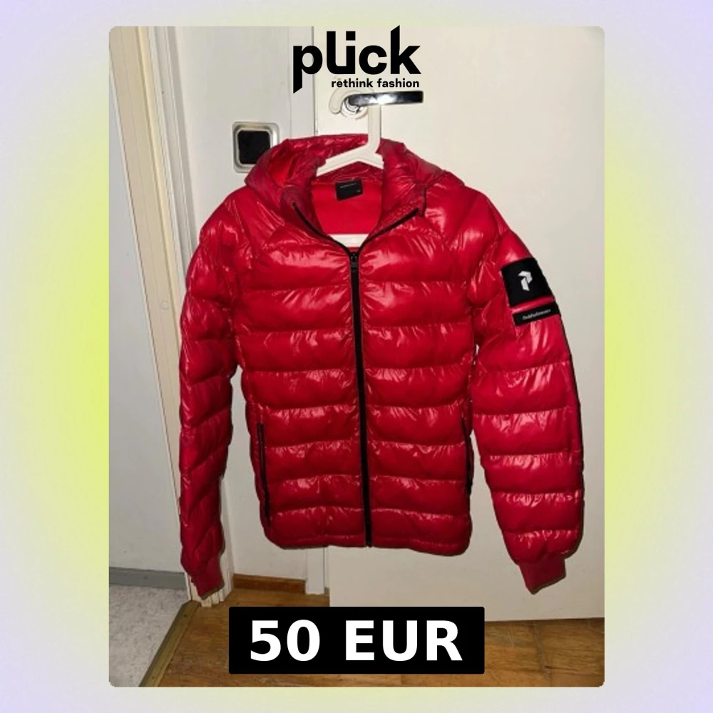 Säljer en röd pufferjacka från Peak Performance med huva och svarta detaljer. Jackan har dragkedja framtill, två sidofickor med dragkedja och en svart patch med logga på ärmen. Perfekt för kalla dagar och riktigt snygg streetstil. Jackan är i storlek 170 men passar storlekar S-XS..